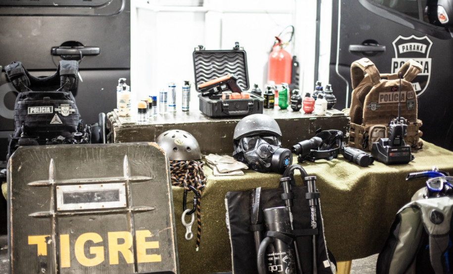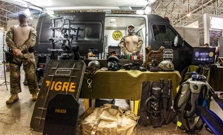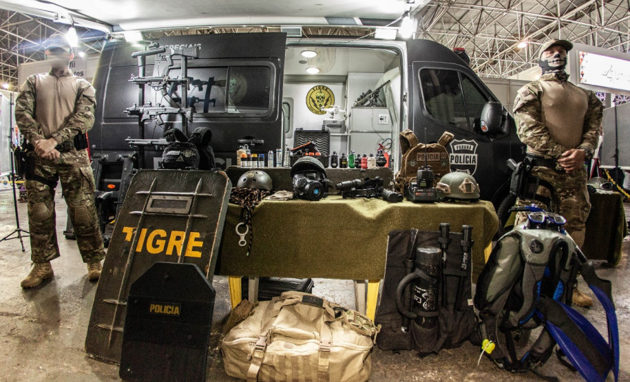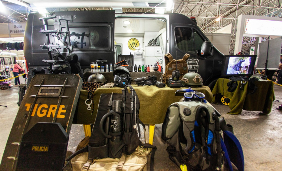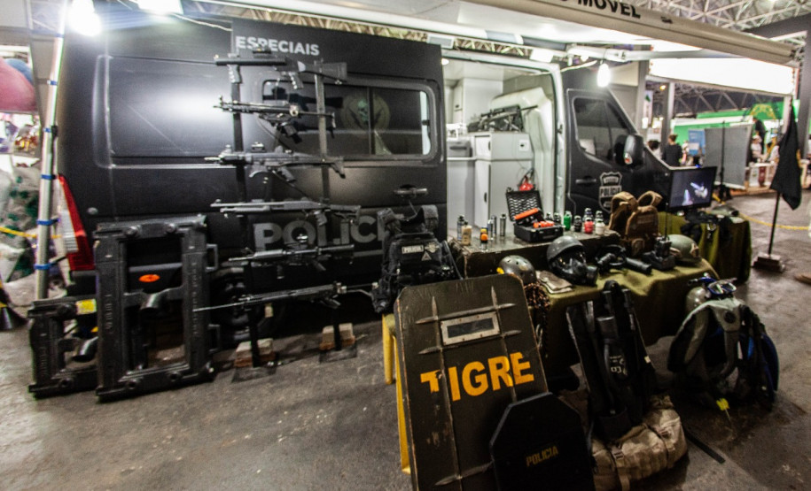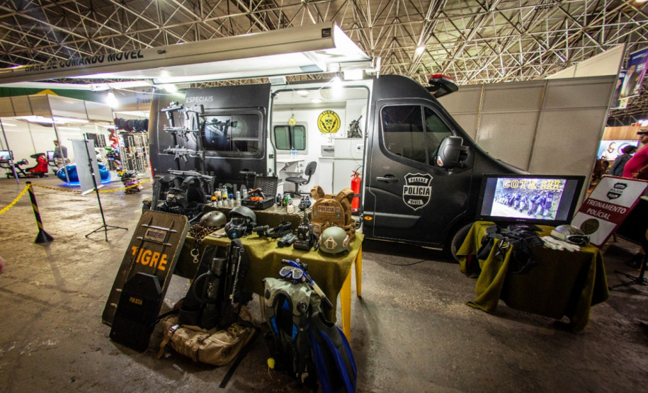 A exposição da PCPR acontece entre 17h e 23h e permite a proximidade da população com a rotina policial. Entre as armas expostas estão: fuzil calibre 762, espingarda calibre 12, submetralhadora .40, metralhadora MP5 9 milímetros, fuzil M4 calibre 556, fuzil sniper e lançador de granada 40 milímetros. Uma van utilizada pelo Tático Integrado de Grupos de Repressão Especial (Tigre - PCPR), coletes, escudos, munições e equipamentos utilizados para arrombamento, também integram o estande.