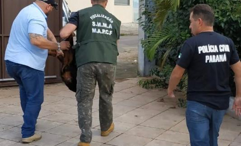 SITUAÇÃO DISTINTA – Na segunda-feira, em outra ação realizada pela PCPR, desta vez no bairro Sítio Cercado, a PCPR resgatou um cão da raça rottweiller, em situação crítica de maus- tratos. O caso chegou até a PCPR por meio de uma denúncia de que o cachorro estava agonizando no quintal da residência.