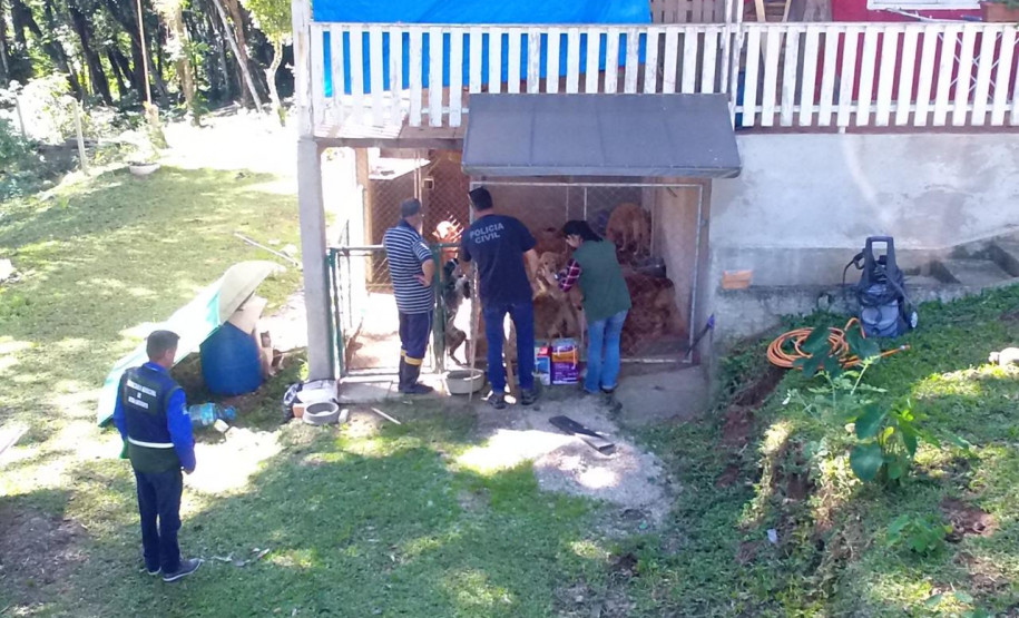 Após uma denúncia anônima, os policiais civis e fiscais da Secretaria Municipal do Meio Ambiente de Piraquara se deslocaram até o endereço. O local estava em péssimas condições sanitárias, espaço físico insuficiente e com diversos animais machucados.