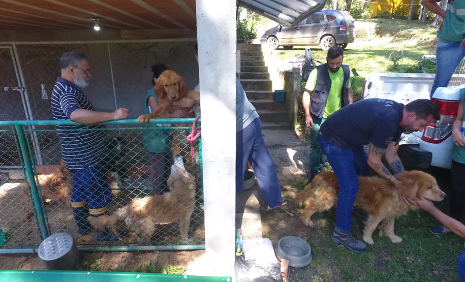 Foram resgatados nove cães da raça border collie e cinco cães da raça golden retriever.
