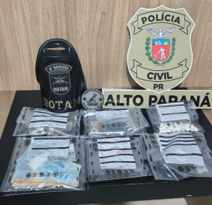 10:26 Geral PCPR e PMPR prendem homem em flagrante por tráfico de drogas em Alto Paraná A Polícia Civil do Paraná (PCPR), em conjunto com a Polícia Militar do Paraná (PMPR), prendeu um homem, de 21 anos, em flagrante pelo crime de tráfico de drogas. A captura aconteceu na tarde desta quinta-feira (29), durante o cumprimento de um mandado de busca e apreensão em Alto Paraná, no Noroeste do Estado. Compartilhe: