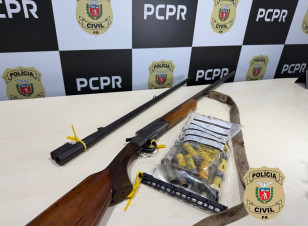 16:20 Geral PCPR e PMPR prendem homem por posse ilegal de arma de fogo e contrabando em São Mateus do Sul A Polícia Civil do Paraná (PCPR), com apoio da Polícia Militar do Paraná (PMPR), prendeu um homem, de 45 anos, por posse ilegal de arma de fogo e contrabando. A ação aconteceu nesta quinta-feira (22), em São Mateus do Sul, no Sudoeste do Estado. Compartilhe: