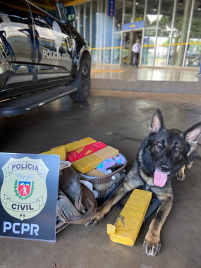 A Polícia Civil do Paraná (PCPR) apreendeu 20 quilos de maconha e prendeu um homem, de 20 anos, em flagrante por tráfico de drogas em Maringá, região Norte do Estado, na segunda-feira (21). Os tabletes da droga foram localizados dentro de uma mala, no saguão da Terminal Rodoviário de Maringá.