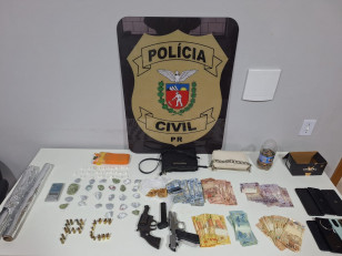 11:02 PCPR prende casal por tráfico de drogas e receptação em Paranavaí A Polícia Civil do Paraná (PCPR) prendeu um homem, de 36 anos, e uma mulher, de 28, em flagrante pelos crimes de tráfico de drogas e receptação. A ação aconteceu nesta segunda-feira (23), no bairro Vila Alta, em Paranavaí, no Noroeste do Estado.