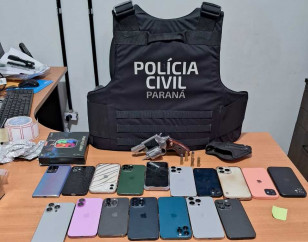 10:08 PCPR recupera 11 celulares furtados em balada de Curitiba A Polícia Civil do Paraná (PCPR) prendeu um homem, de 22 anos, pelos crimes de receptação qualificada e posse ilegal de arma de fogo com numeração suprimida.