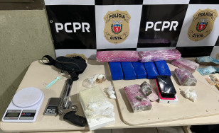 09:52 PCPR apreende mais de 7 quilos de drogas e uma arma de fogo durante ação em Nova Esperança A Polícia Civil do Paraná (PCPR) prendeu um homem, de 40 anos, por tráfico de drogas e posse irregular de arma de fogo, na manhã desta segunda-feira (22), em Nova Esperança, no Noroeste do Estado.