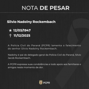 10:31 Nota de pesar A Polícia Civil do Paraná (PCPR) lamenta o falecimento do senhor Silvio Nadolny Rockembach. Nadolny é pai do delegado-geral da Polícia Civil do Paraná, Silvio Jacob Rockembach. A PCPR expressa suas condolências e todo apoio aos familiares e amigos neste momento de dor.