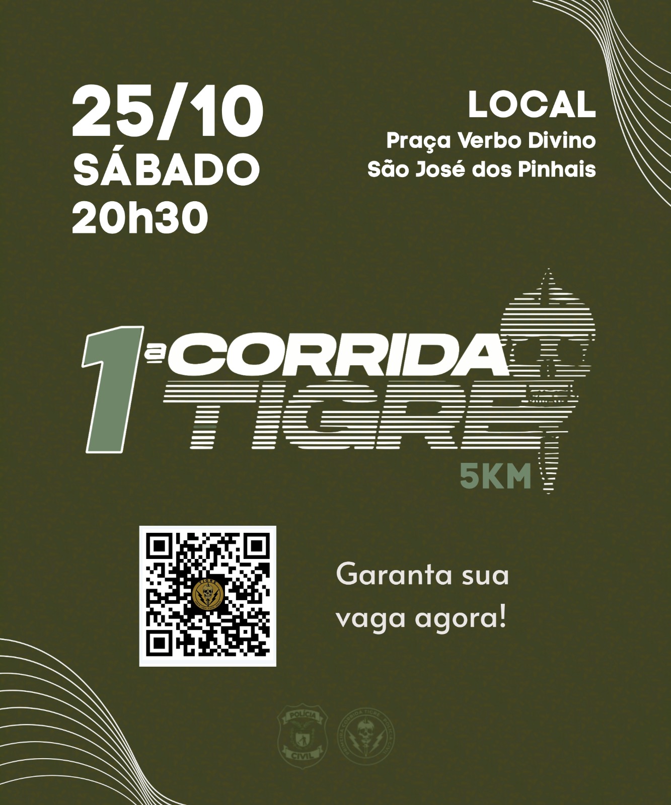 O Tático Integrado de Grupos de Repressão Especial (Tigre) da Polícia Civil do Paraná (PCPR) celebra 35 anos em 2025. Para marcar a data, promove sua 1ª Corrida Noturna, programada para acontecer no dia 25 de outubro em São José dos Pinhais, na Região Metropolitana de Curitiba.
