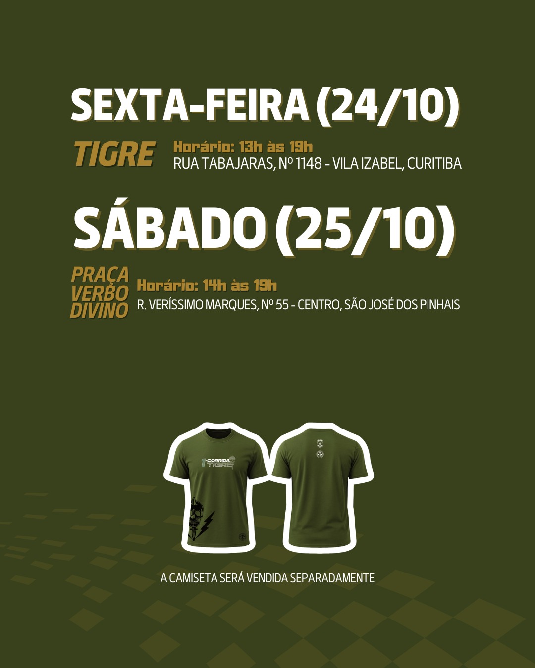 Nesta sexta-feira (24), das 13h às 19h, na sede do Tigre, localizada na rua Tabajaras, nº 1148, no bairro Vila Izabel, em Curitiba. E no sábado (25), das 14h às 19h, na Praça Verbo Divino, local da largada.