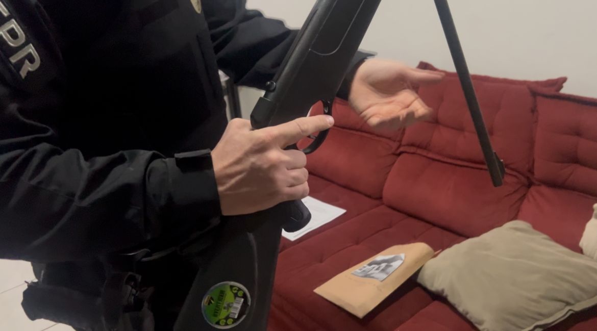 A Polícia Civil do Paraná (PCPR) apreendeu uma arma de pressão e projéteis durante o cumprimento de uma mandado de busca e apreensão. A ação aconteceu nesta sexta-feira (10), em Cornélio Procópio, no Norte do Estado.