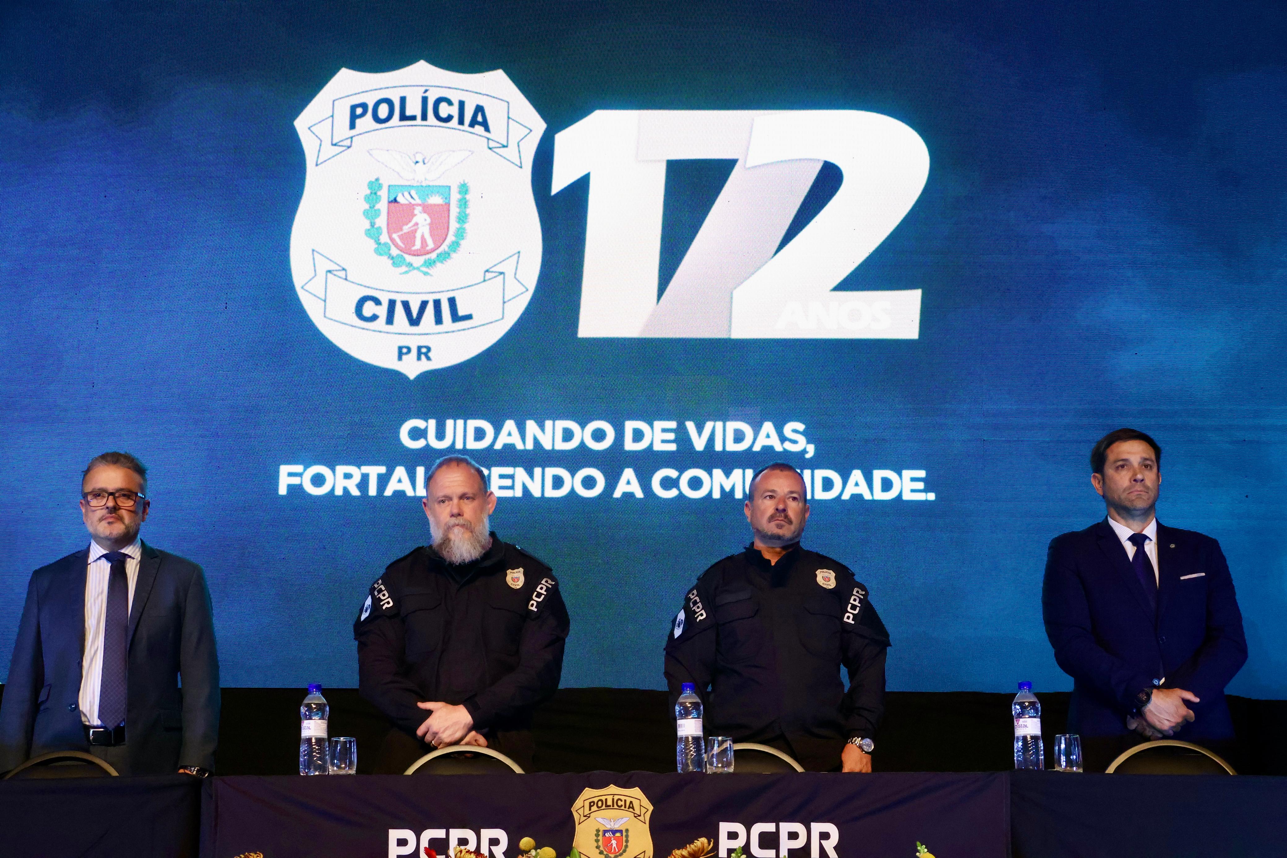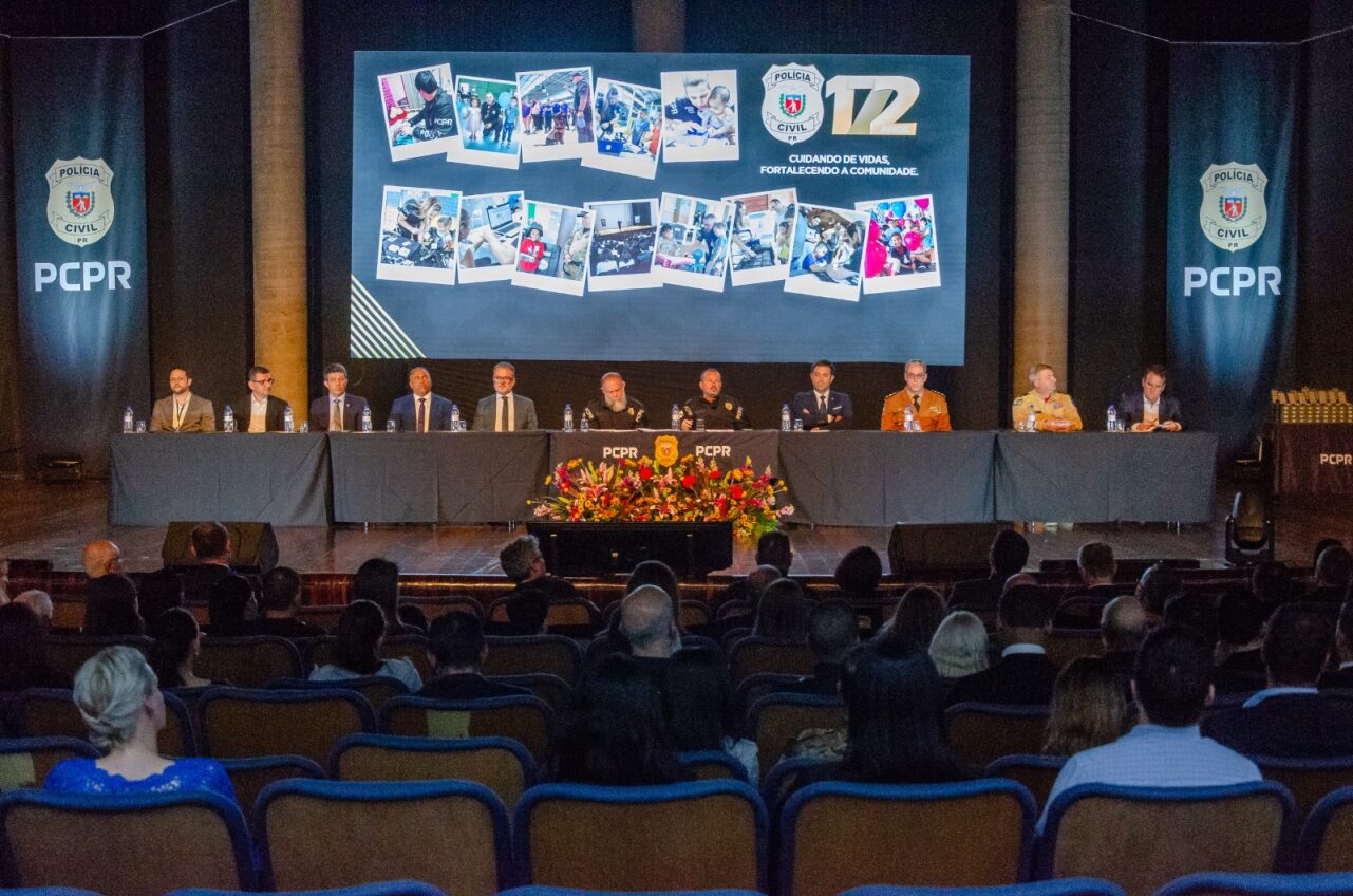 A Polícia Civil do Paraná (PCPR) comemorou nesta quarta-feira (1) os seus 172 anos. A solenidade foi realizada no Canal da Música, em Curitiba, teve como tema central o lema “Cuidando de vidas, fortalecendo a comunidade”, relembrou a história da corporação e foi marcada por homenagens aos policiais que atuam ou que já atuaram na instituição.