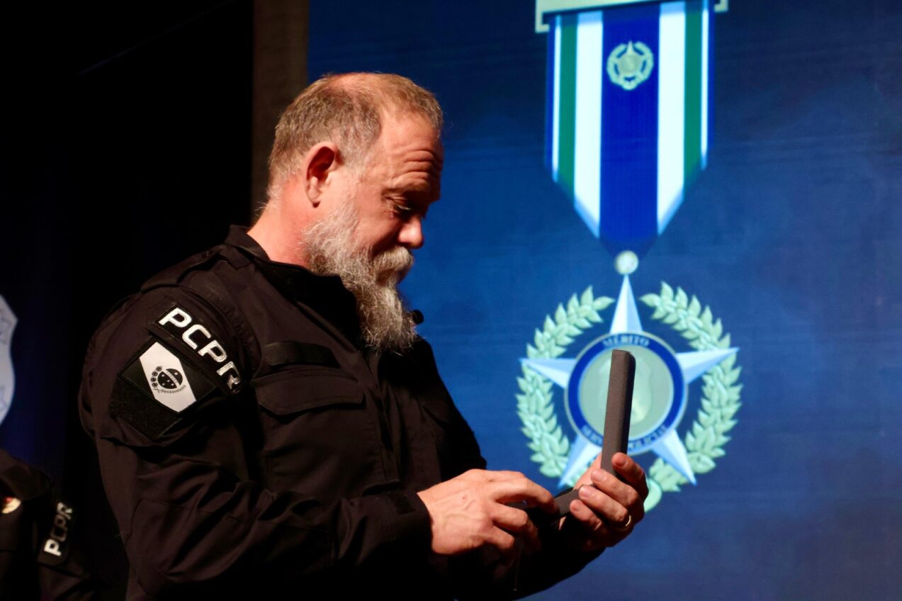 Além deles, 192 servidores foram condecorados com a medalha de Serviço Policial. A insígnia foi entregue aos policiais que completaram 10, 20 e 30 anos de carreira a fim de reconhecer e premiar a dedicação, a eficiência e os relevantes serviços prestados em prol da Polícia Civil do Paraná e da Segurança Pública.