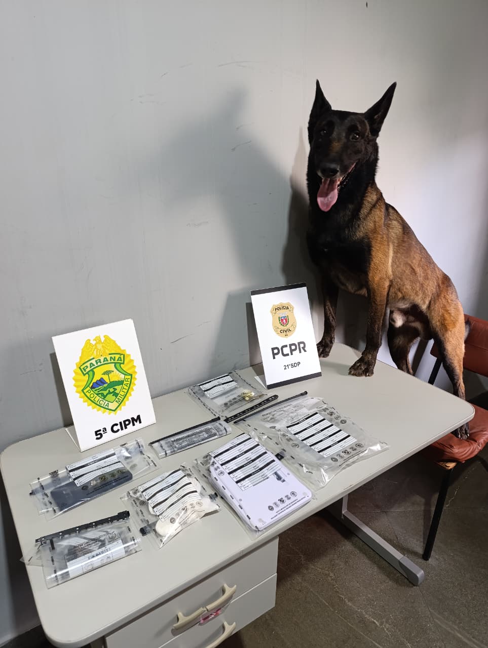A Polícia Civil do Paraná (PCPR), em conjunto com a Polícia Militar do Paraná (PMPR), apreendeu na tarde desta quinta-feira (16) porções de substância análoga à cocaína durante o cumprimento de um mandado de busca e apreensão domiciliar na Zona 07, em Cianorte, Noroeste do Estado.