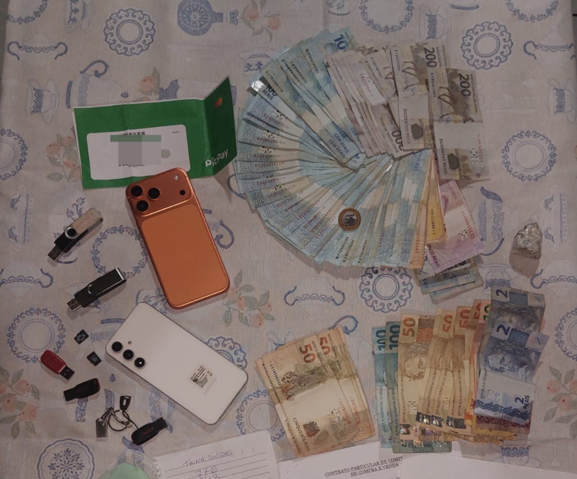 Nos endereços, os policiais localizaram mais de R$ 26 mil em espécie, valor que demonstra a alta rotatividade financeira do grupo criminoso.