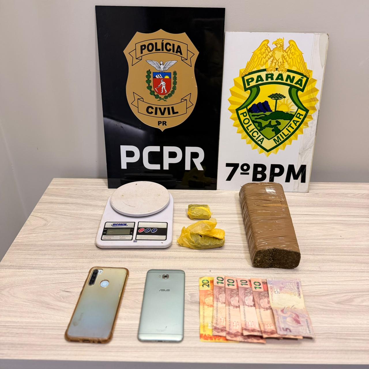 Segundo o delegado da PCPR Douglas Miller Moraes, a ação teve como objetivo o cumprimento de dois mandados de buscas e apreensão, onde foram apreendidos porções de maconha, dinheiro em espécie e uma balança de precisão.