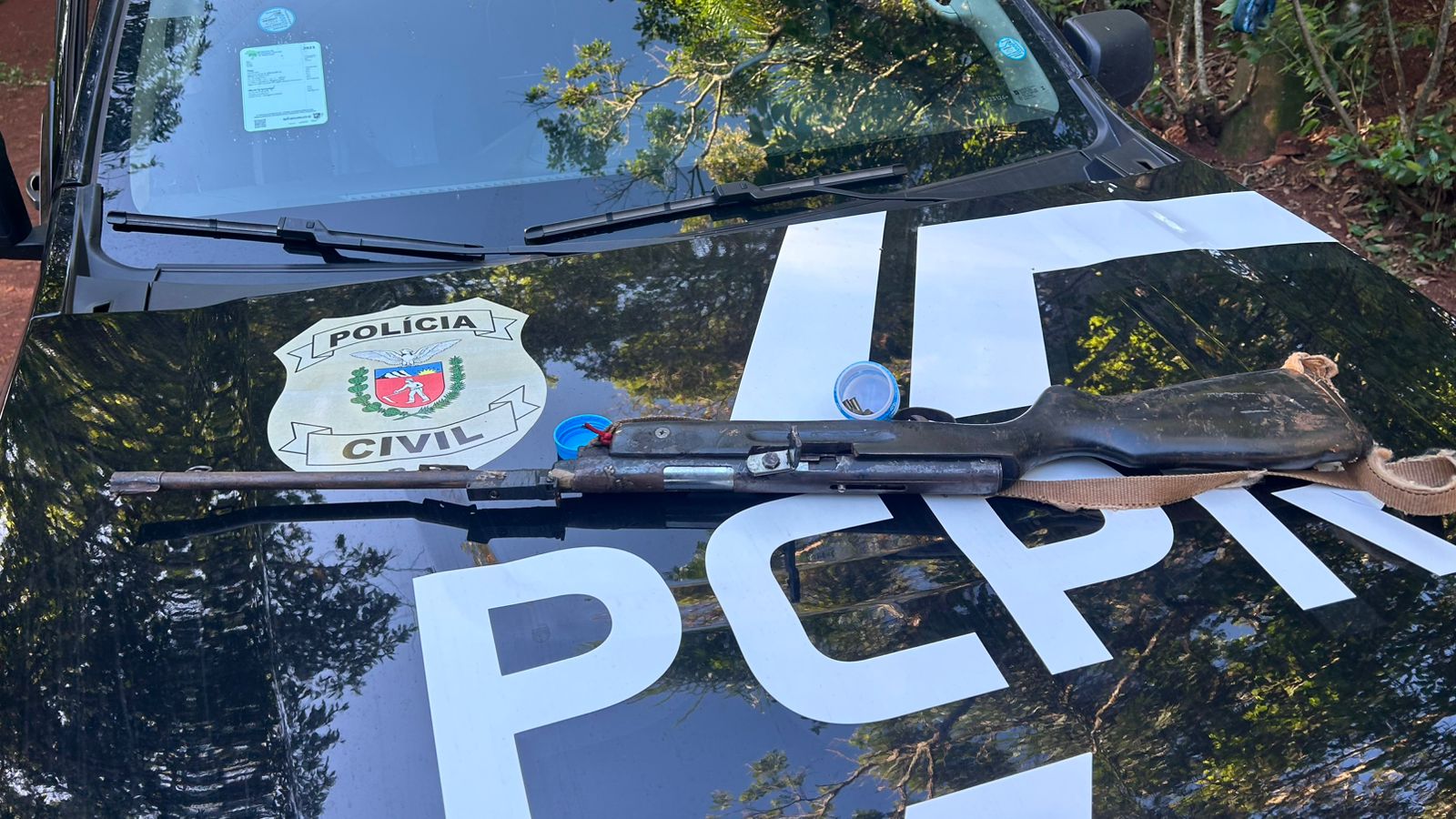 A Polícia Civil do Paraná (PCPR), em ação conjunta com a Polícia Militar do Paraná (PMPR), prendeu um homem, de 49 anos, em flagrante por posse irregular de arma de fogo. A ação aconteceu na segunda-feira (10), em Congonhinhas, no Norte do Estado.