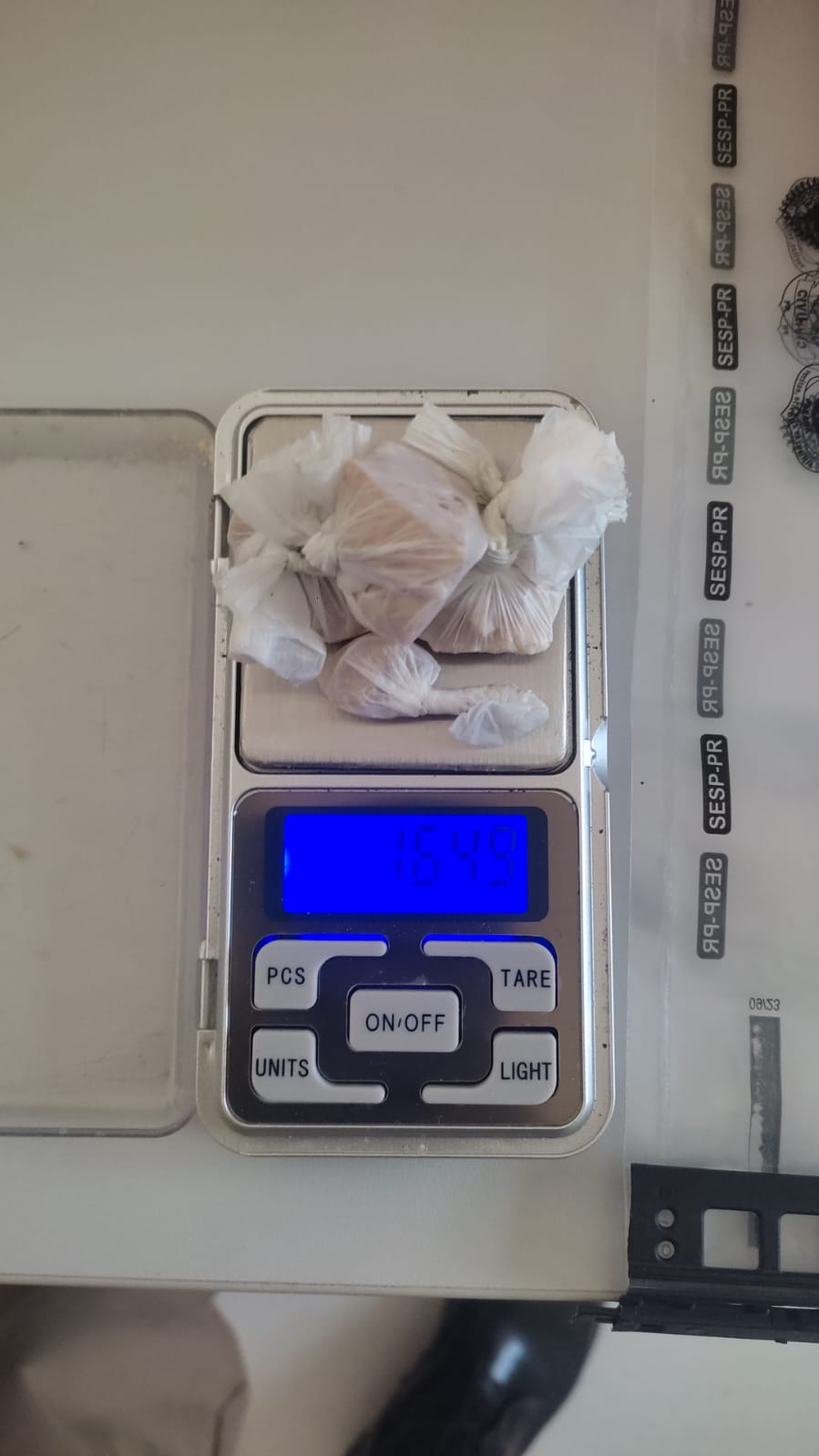 Conforme a delegada da PCPR Isabelle Sousa Falcão, na área externa do local, foram visualizados dois invólucros contendo substância semelhante a crack e dinheiro em notas de pequeno valor.