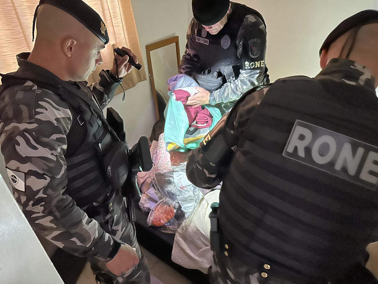 O major Arnaldo Luiz Pereira Filho, das Rondas Ostensivas de Natureza Especial (Rone) da PMPR, ressaltou que, desde que as primeiras informações surgiram em maio, o trabalho passou a ser conduzido de forma totalmente integrada entre as forças de segurança, o que permitiu avançar com precisão até o cumprimento dos mandados. “Desde maio, quando surgiram os primeiros indícios sobre o armazenamento de grandes quantidades de cetamina, trabalhamos de maneira conjunta com a Polícia Civil, compartilhando informações e alinhando cada passo da investigação. Esse esforço integrado foi essencial para confirmar o endereço usado pelo grupo, reunir provas e chegar aos responsáveis”, disse.