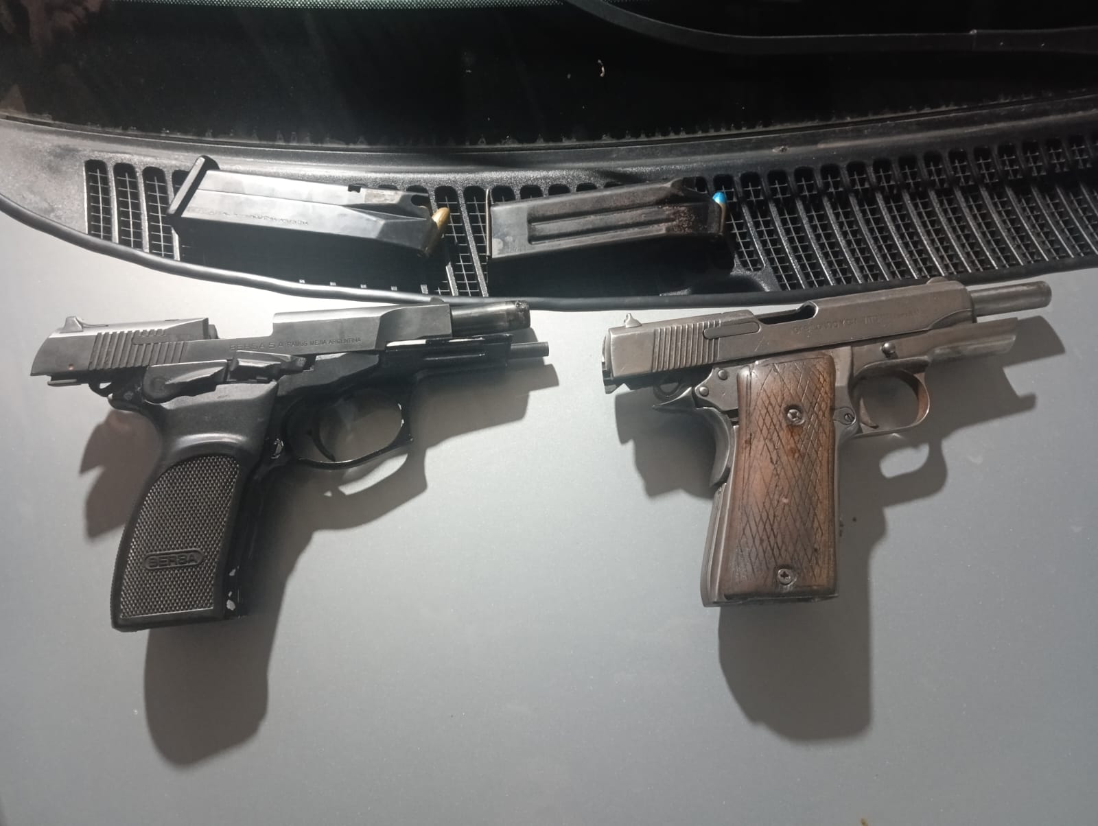 Durante as diligências, as equipes policiais cumpriram seis mandados de busca e apreensão com o apoio de cães de faro da PMPR. Nos endereços, foram localizadas duas pistolas calibre 9mm em posse de um adolescente e mais quatro armas em posse de um adulto, sendo duas de calibres .380 e .357 com numerações suprimidas, um revólver calibre .38 e uma espingarda calibre .22 equipada com luneta.