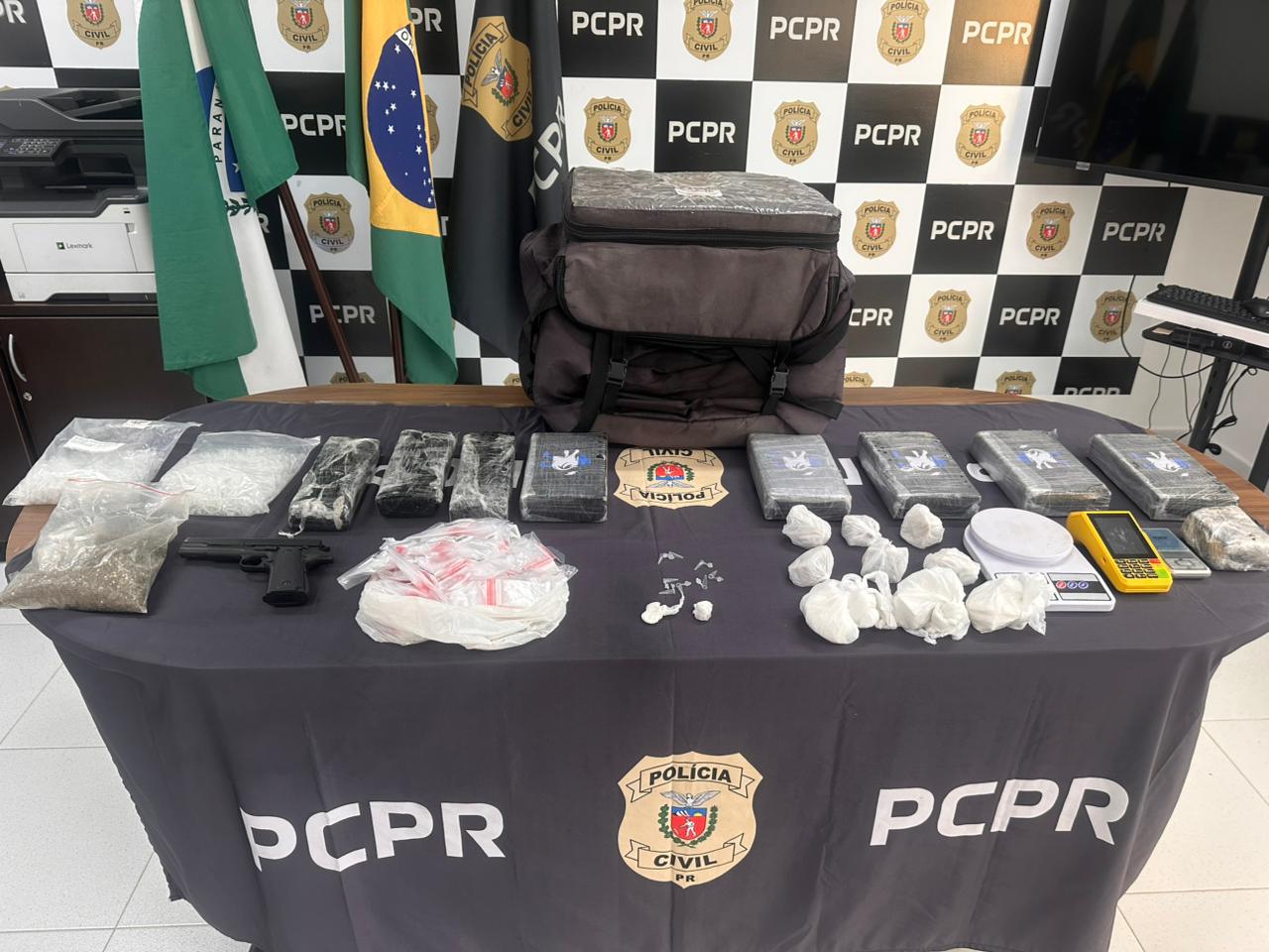 A Polícia Civil do Paraná (PCPR) deflagrou, na manhã desta quinta-feira (15), mais uma fase da operação que investiga um duplo homicídio ocorrido em Matinhos, no Litoral do Estado. A ação resultou na prisão preventiva do indivíduo apontado como mandante do crime. Durante o cumprimento dos mandados, foram apreendidos cerca oito quilos de entorpecentes e materiais usados para o tráfico de drogas.