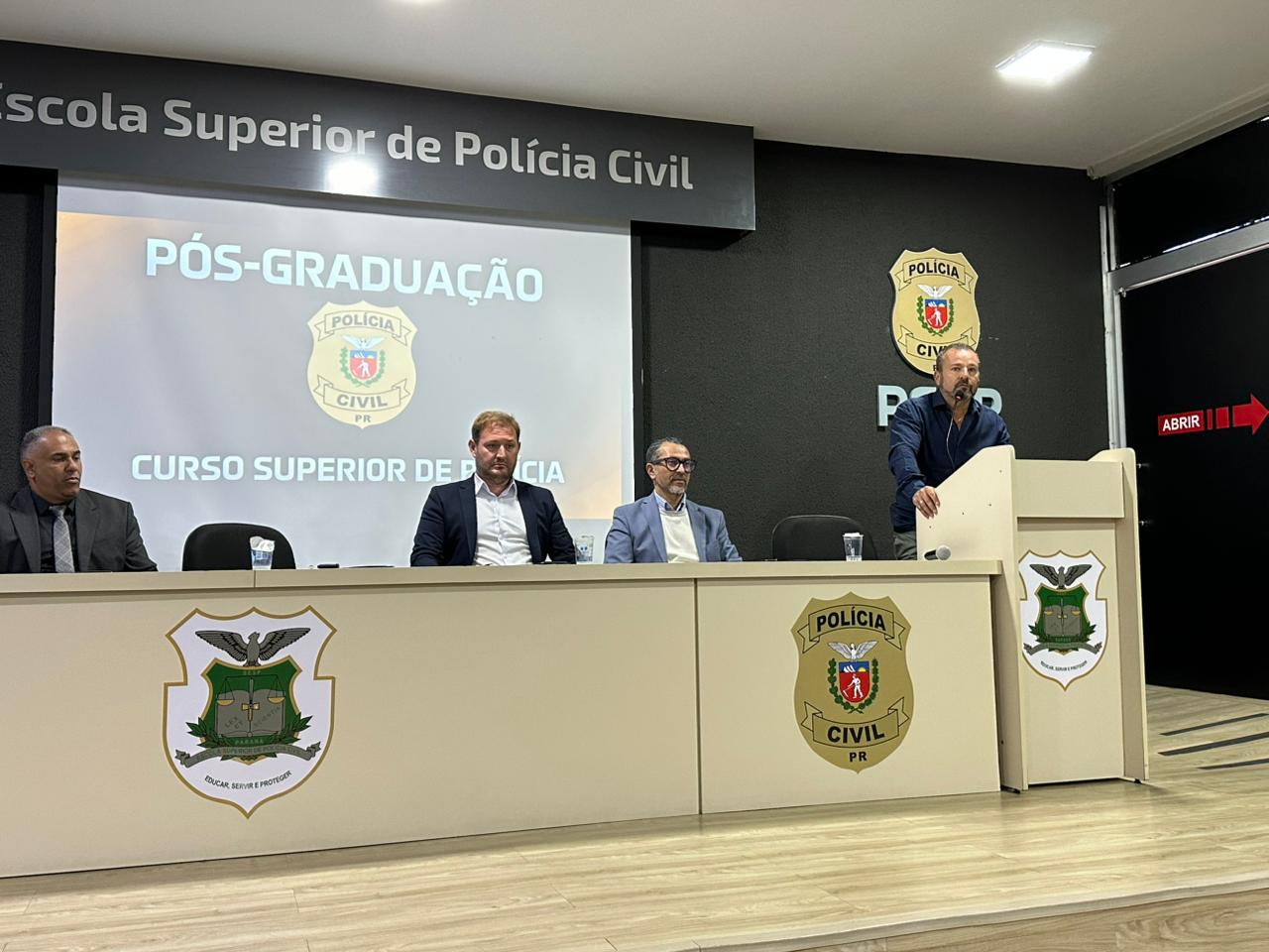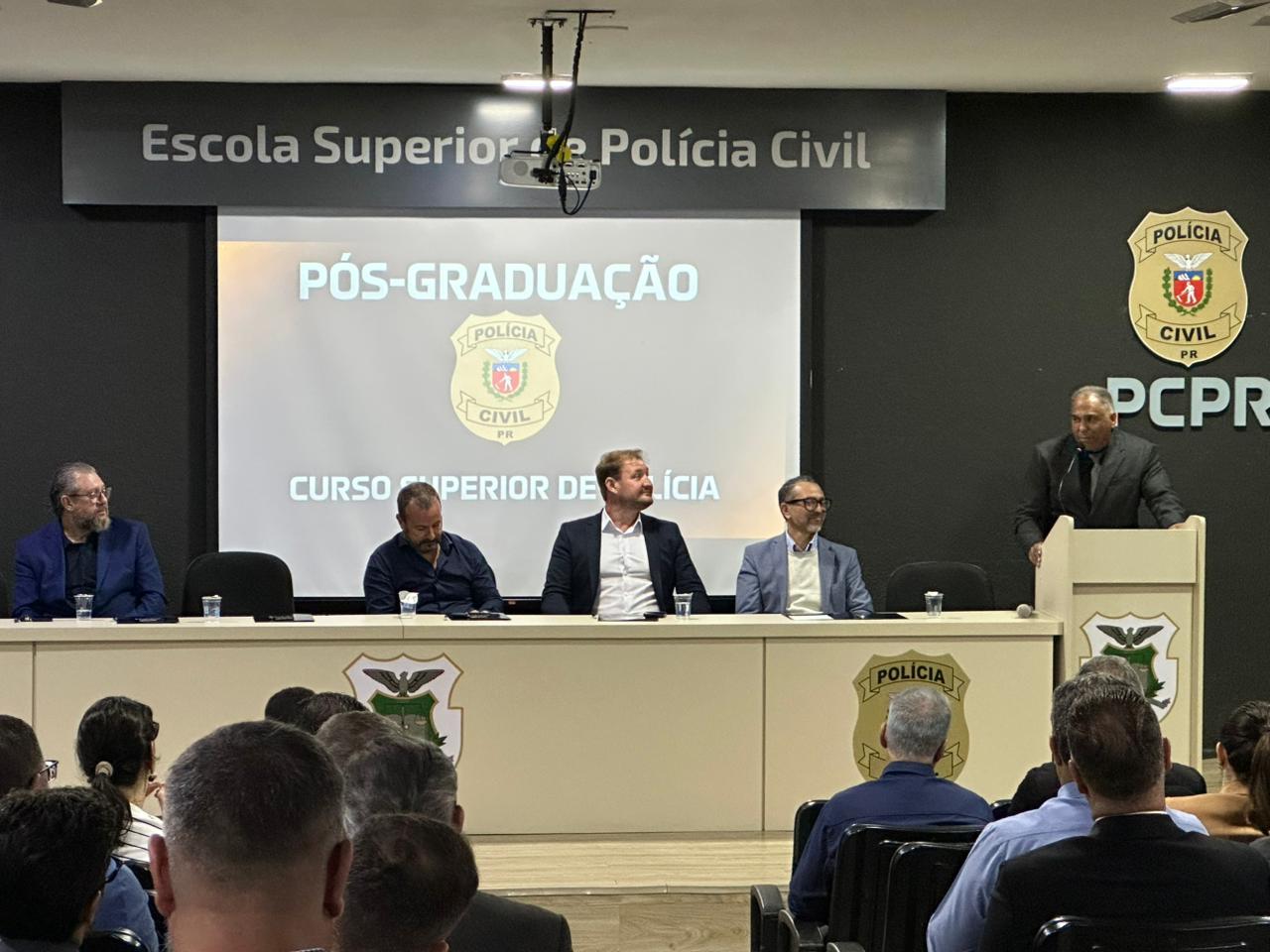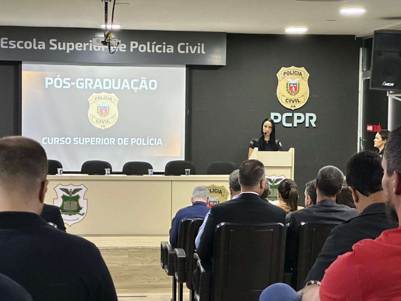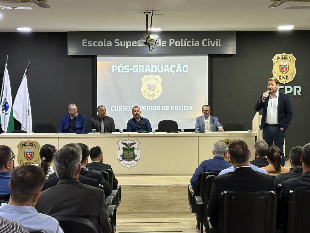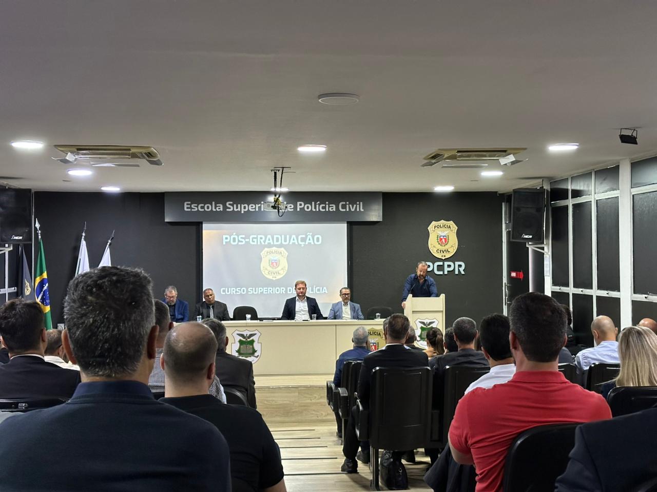 A Polícia Civil do Paraná (PCPR) iniciou nesta segunda-feira (13) o curso de pós-graduação destinado a 81 delegados de polícia de todo o estado. A formação acontece na Escola Superior de Polícia Civil (ESPC), em Curitiba, e visa o fortalecimento da gestão, da liderança e da excelência na atividade policial.