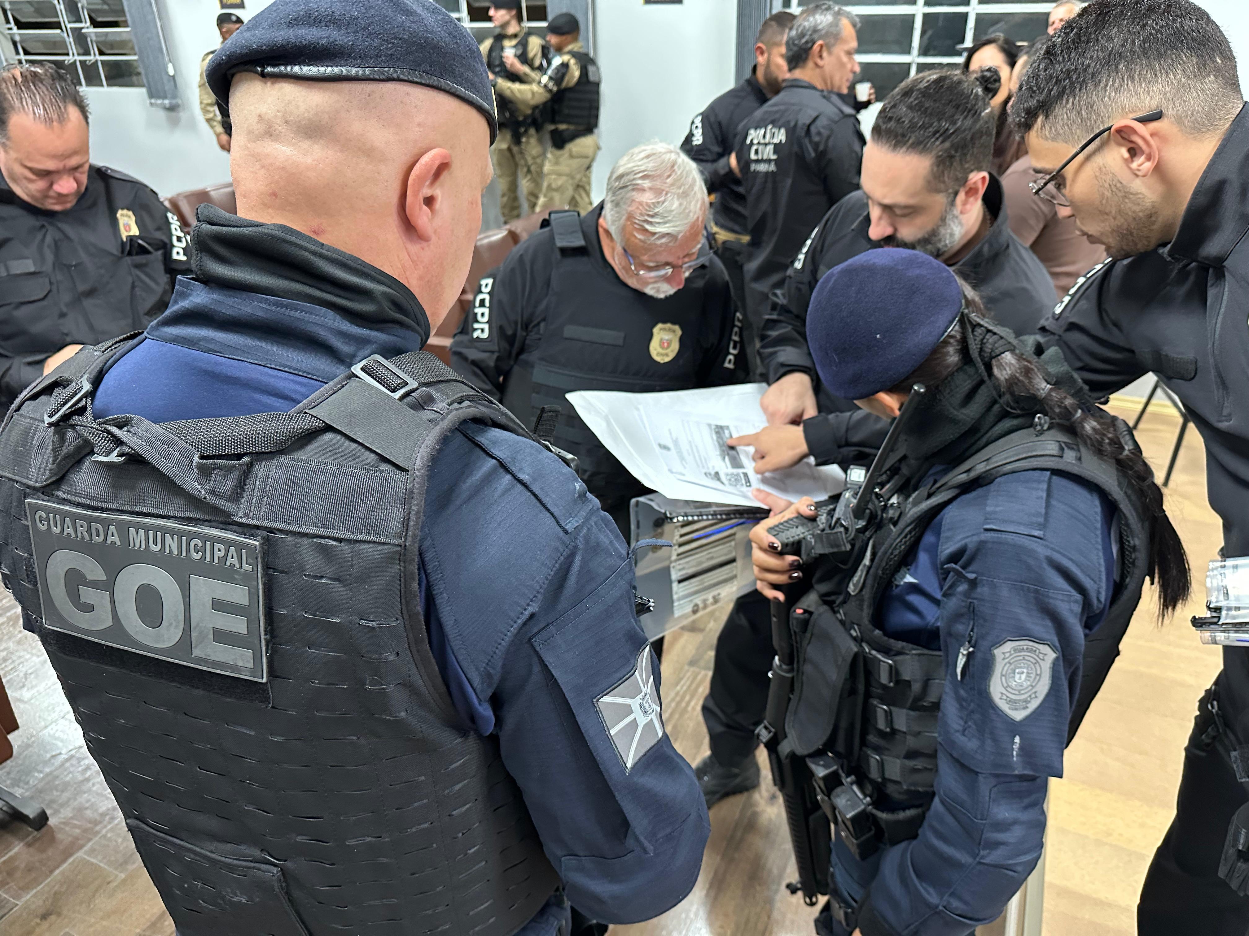 A operação contou com um helicóptero da PCPR e visou o cumprimento de três mandados de prisão preventiva e 11 de busca e apreensão em endereços ligados aos investigados. Equipes da Polícia Militar do Paraná (PMPR) e da Guarda Municipal de Curitiba prestaram apoio no cumprimento das ordens judiciais.
