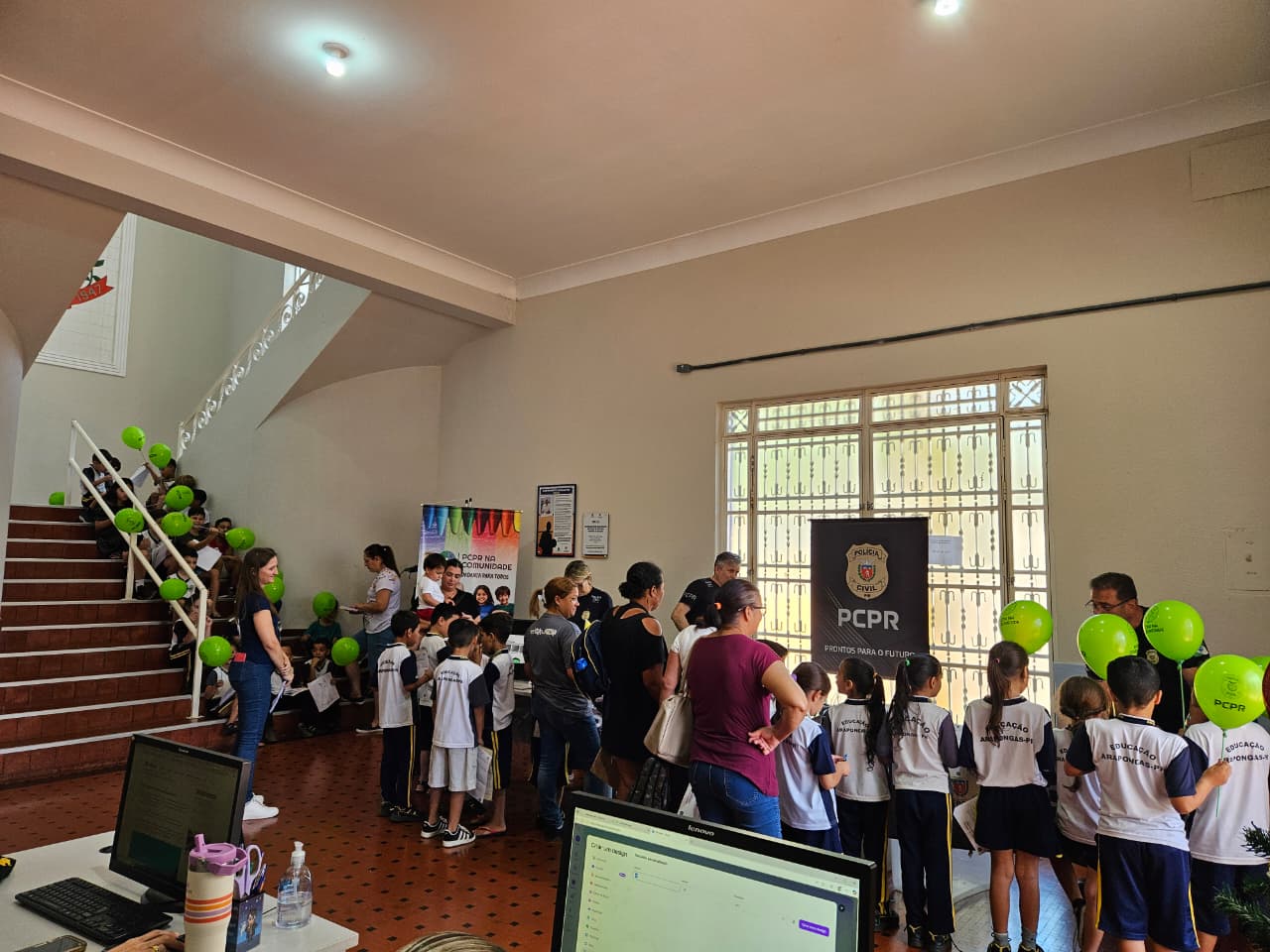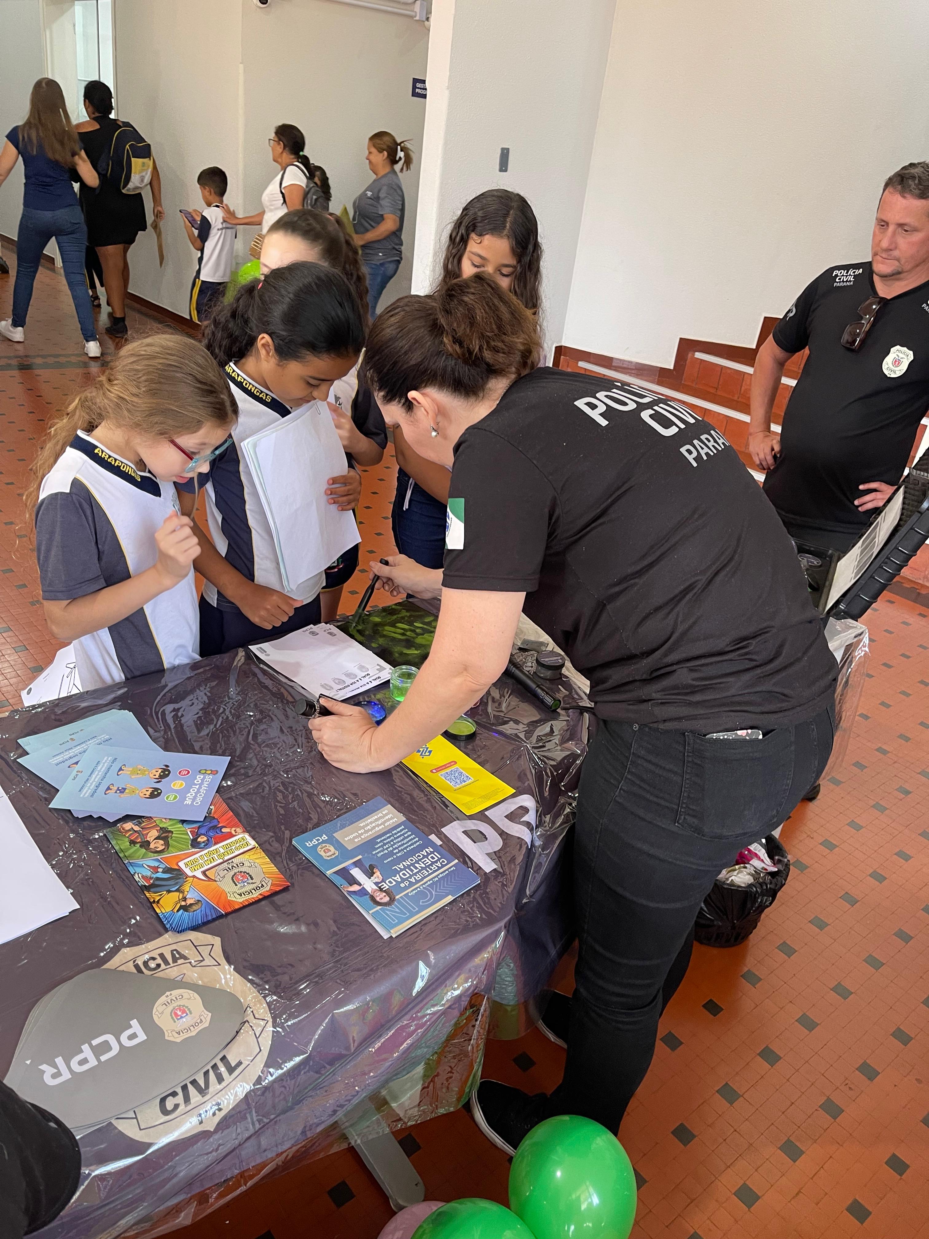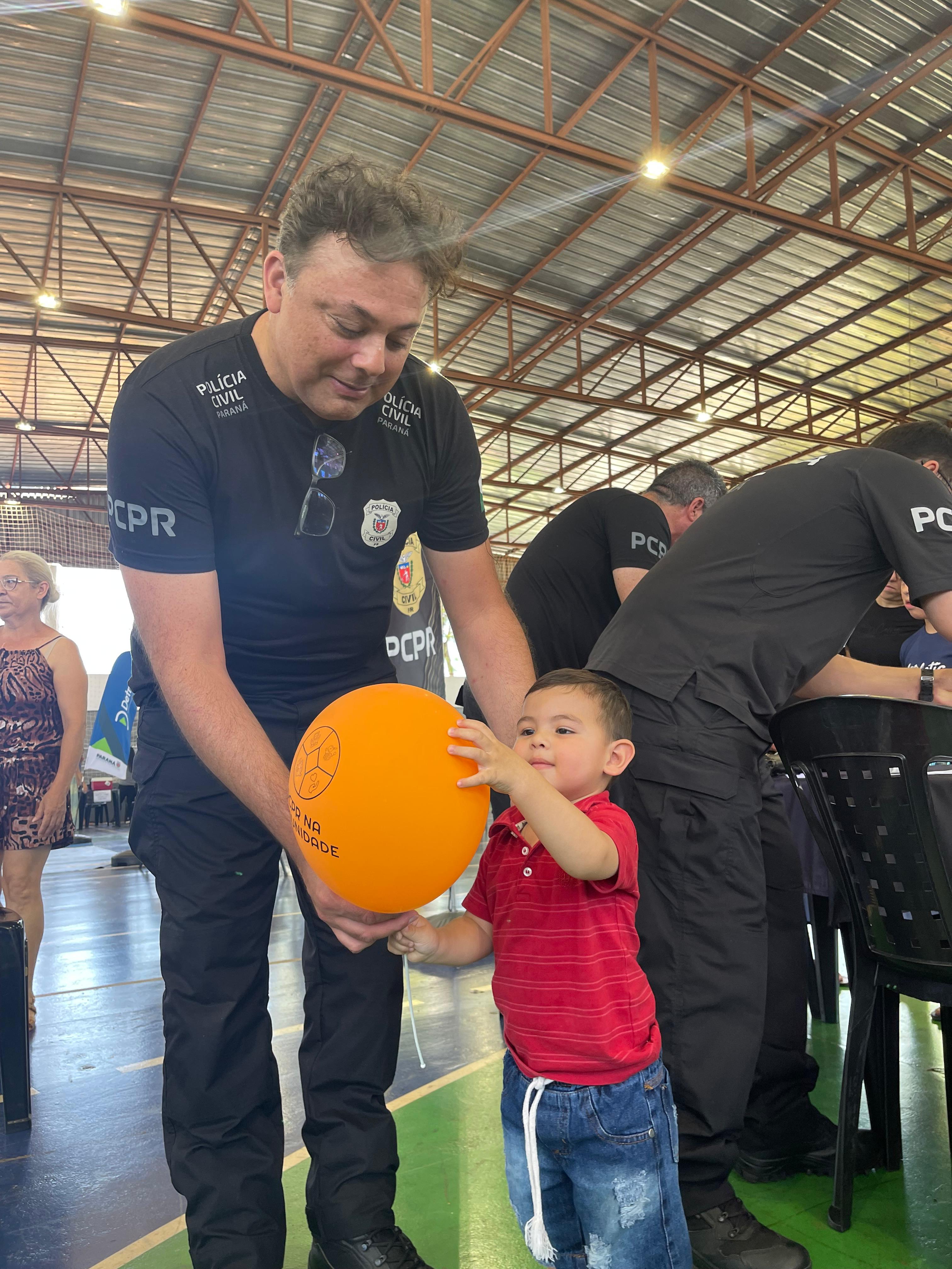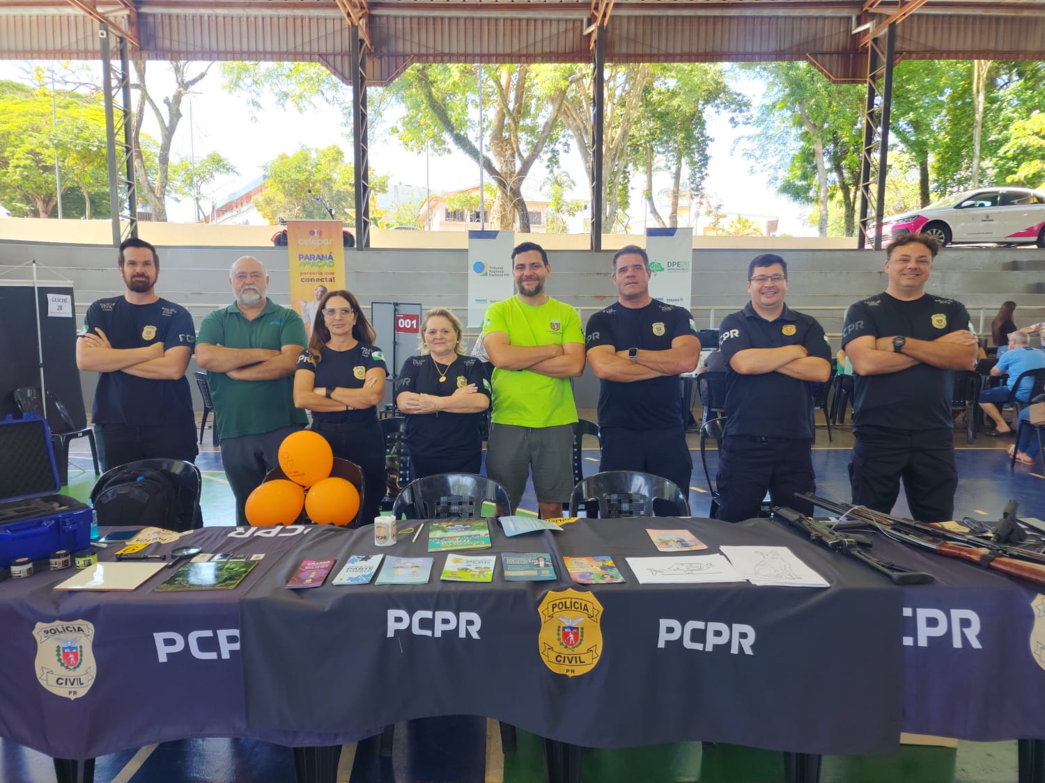 O evento também contou com exposições de materiais táticos utilizados pela PCPR, ações lúdicas para crianças, distribuição de materiais informativos e orientações sobre o trabalho da polícia judiciária.