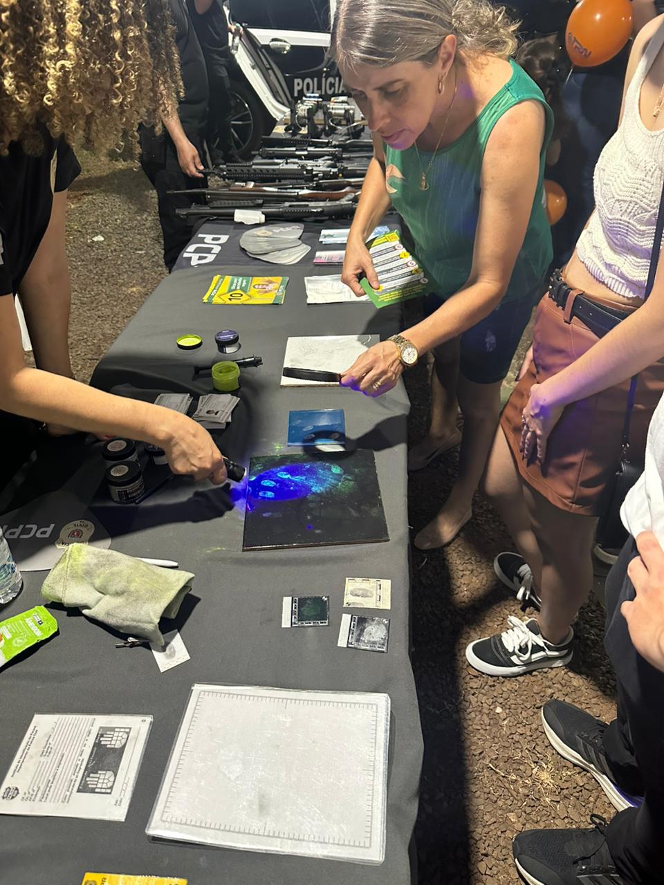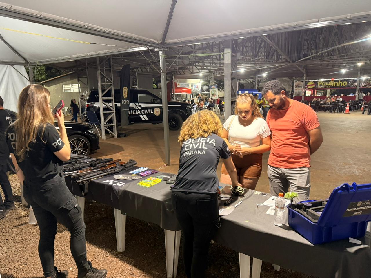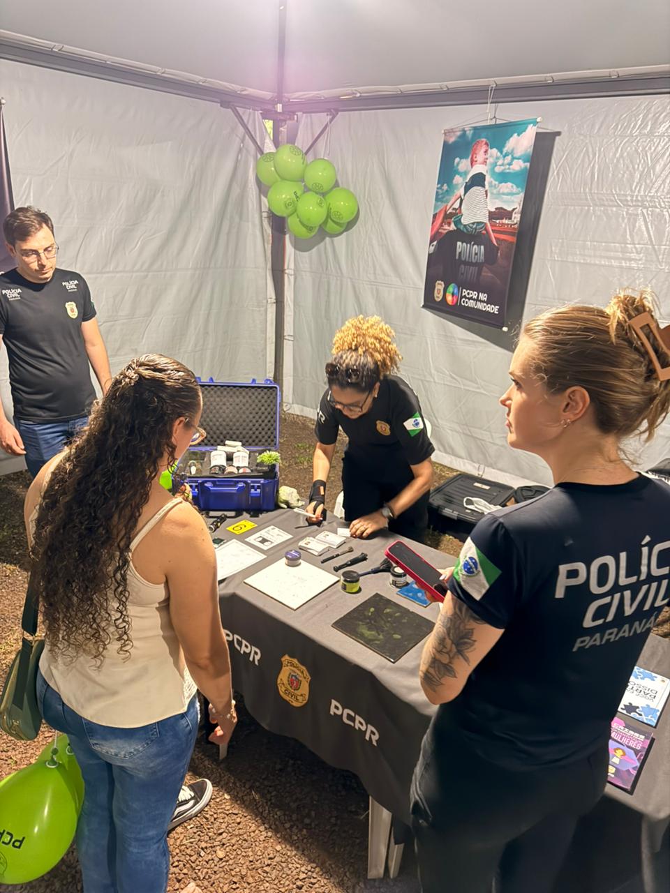 Durante o evento, a população teve acesso a orientações e à solicitação de atestados de antecedentes criminais. Também foram realizadas demonstrações de perícia papiloscópica, exposições de materiais táticos utilizados em ações da PCPR, atividades lúdicas e educativas voltadas ao público infantil e distribuição de materiais informativos.