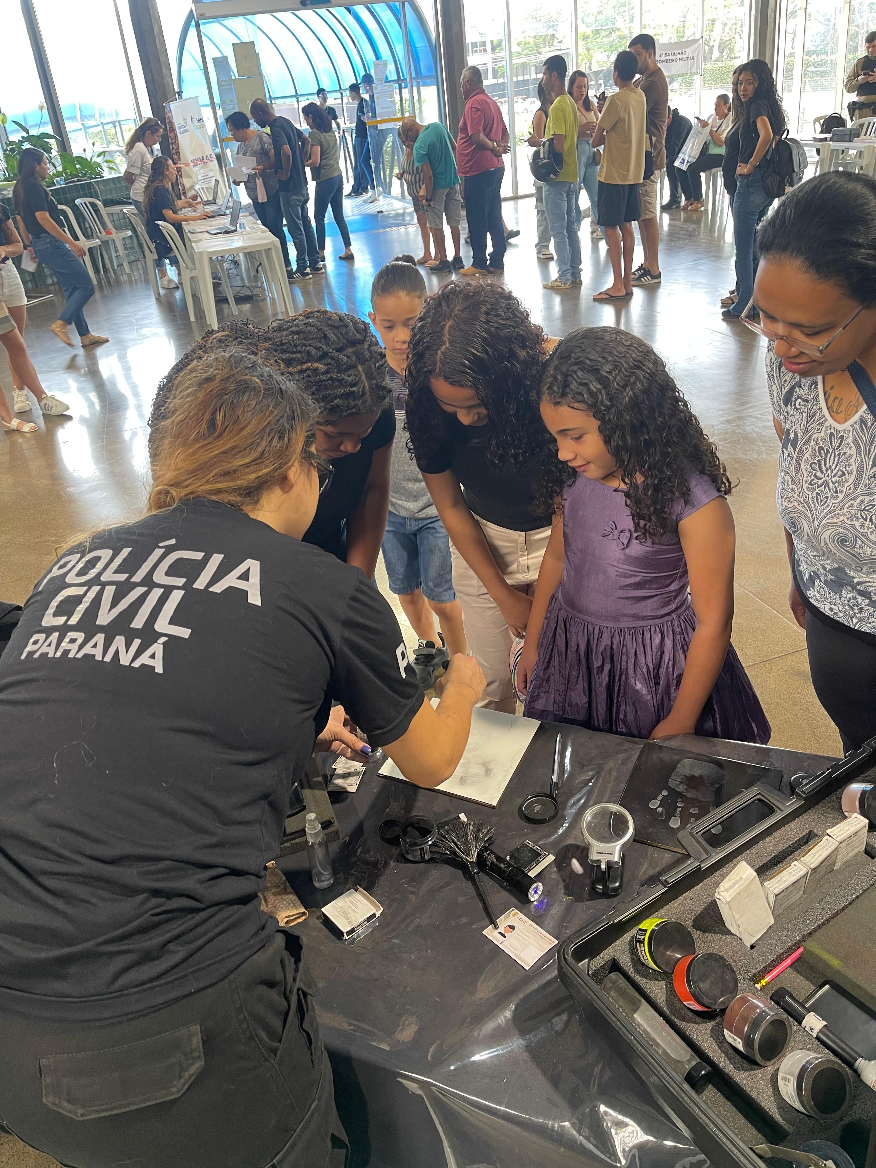 A programação do evento contou ainda com demonstrações de perícia papiloscópica — técnica usada para coletar impressões digitais —, exposições de equipamentos táticos utilizados pela instituição e atividades educativas voltadas às crianças.