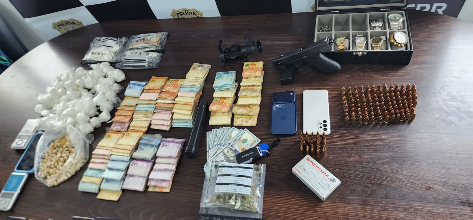 A Polícia Civil do Paraná (PCPR) prendeu duas mulheres e sete homens durante uma operação deflagrada nas primeiras horas desta terça-feira (10). A ação aconteceu em Fazenda Rio Grande, na Região Metropolitana, e em Curitiba, e resultou na apreensão de 2.150 porções de entorpecentes e dólares americanos.