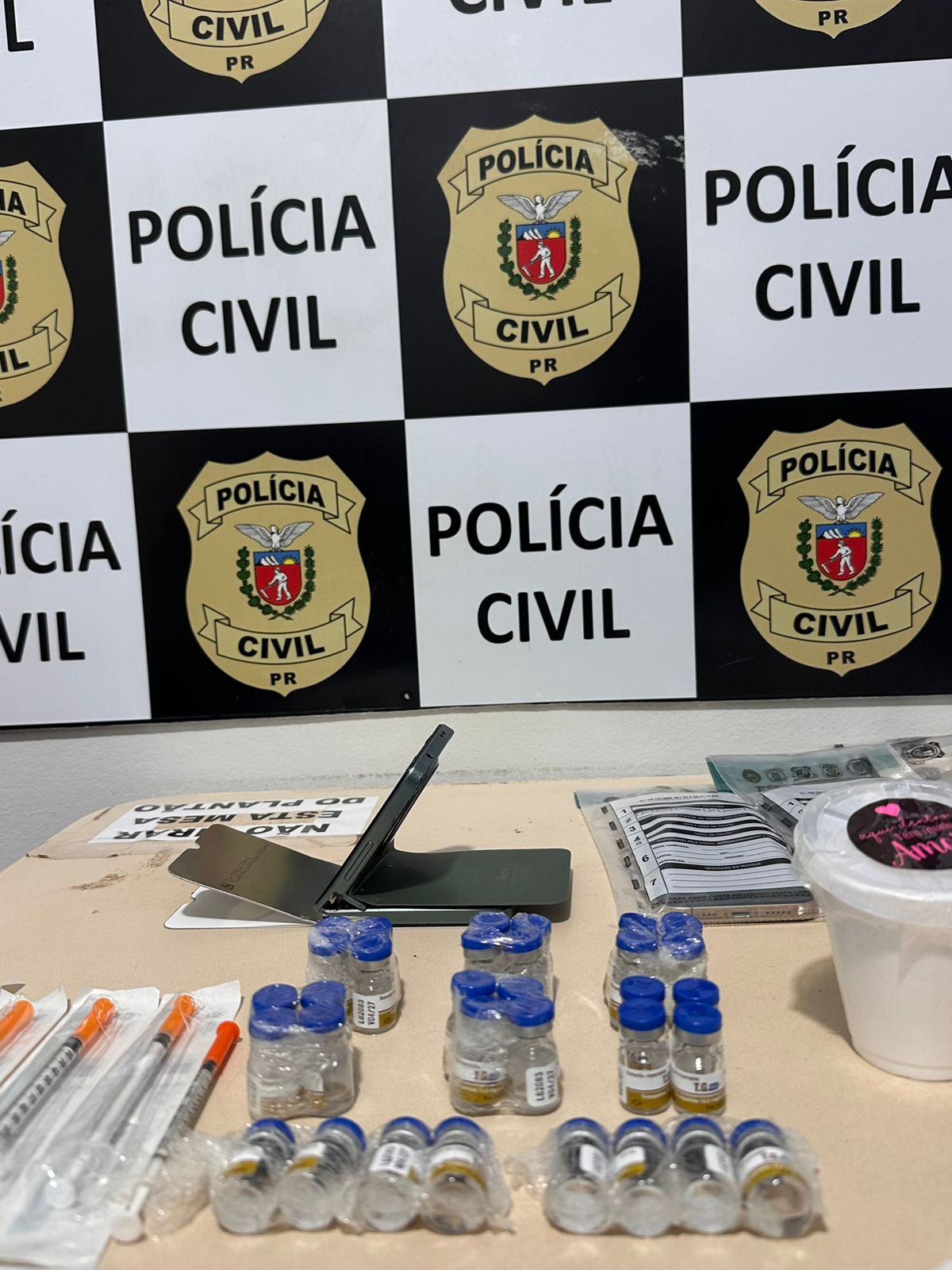 No veículo, foram apreendidas quatro ampolas do medicamento acondicionadas em frascos com gelo, uma máquina de cartão e 20 seringas descartáveis. Na residência do casal, no bairro Jardim Sumaré, foram encontradas mais 28 ampolas, totalizando 32 unidades.