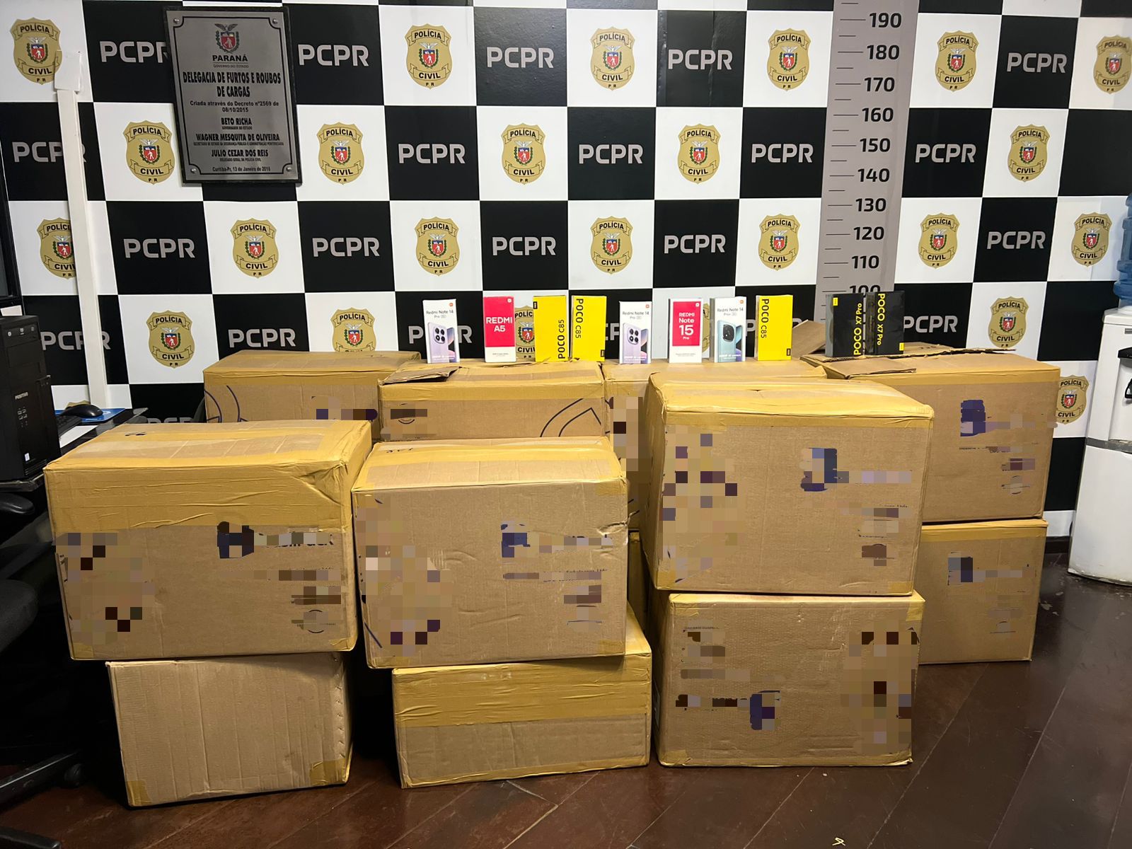 A Polícia Civil do Paraná (PCPR) prendeu dois homens pelo crime de descaminho na noite desta segunda-feira (12), no bairro Xaxim, em Curitiba. Eles foram flagrados com uma carga de 1.680 celulares sem procedência.
