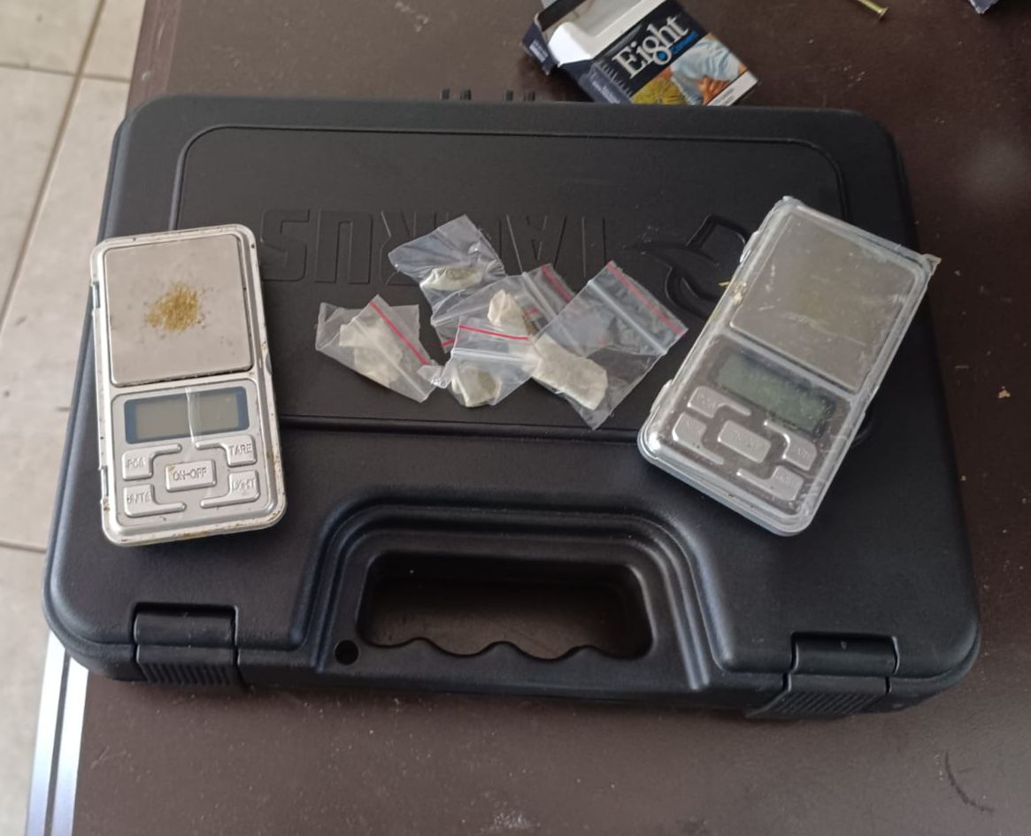 Foram encontrados 39 gramas de cocaína distribuída em porções maiores e invólucros prontos para venda, 23 comprimidos de ecstasy, haxixe e outras variantes de maconha, além de duas balanças de precisão e cerca de 150 sacos tipo zip-lock para embalagem.