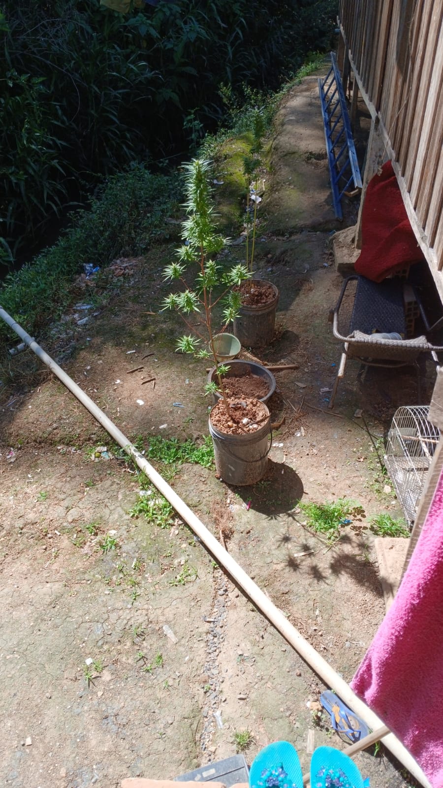De acordo com a investigação, os policiais se deslocaram até o endereço indicado e visualizaram, na parte externa do imóvel, dois pés de maconha plantados em vasos.