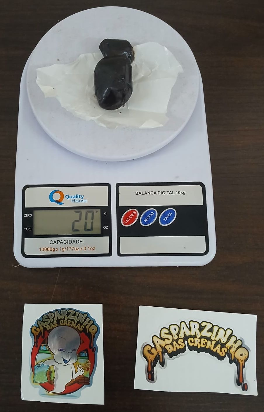 Os policiais localizaram o automóvel e efetuaram a abordagem. Durante a verificação, foram apreendidos aproximadamente 20 gramas de substância conhecida como “dry”, derivada da maconha.