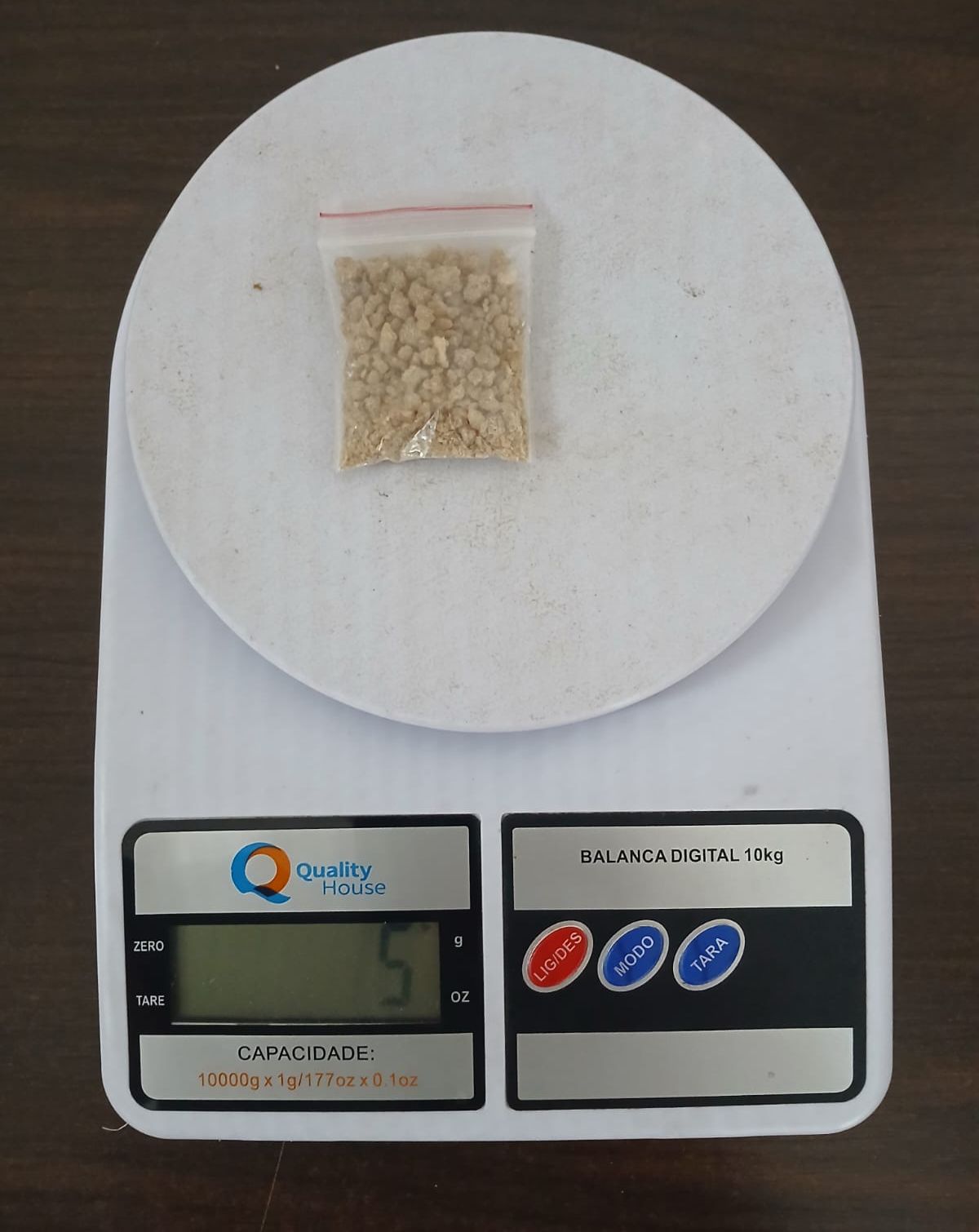 “Também foram apreendidos cerca de 5 gramas de substância análoga ao ecstasy, além de três aparelhos celulares. O material foi avaliado em cerca de R$ 1,2 mil”, explica.