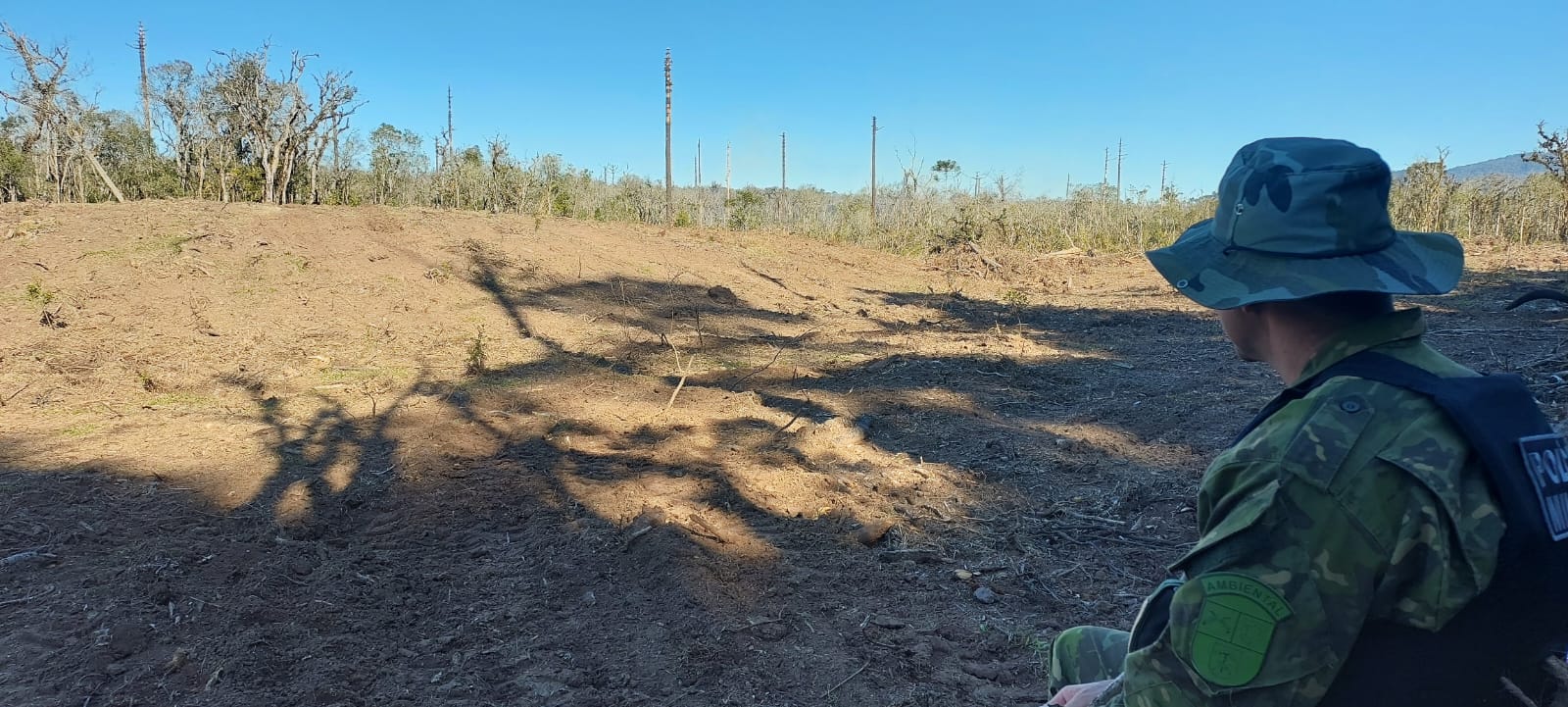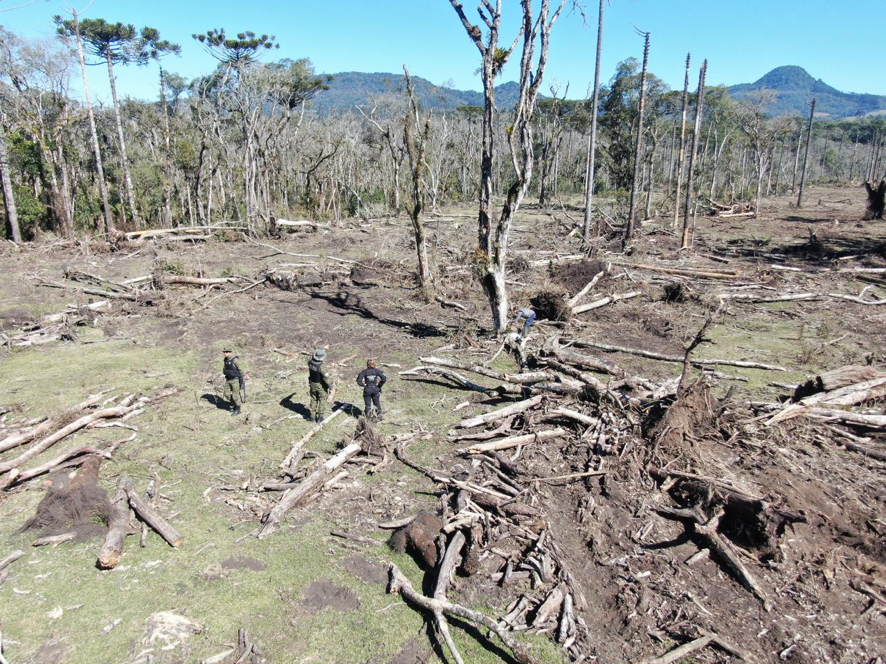 De acordo com as investigações, que contaram com o apoio da Polícia Militar do Paraná (PMPR), o suspeito teria promovido a destruição de aproximadamente 106 hectares da Floresta Ombrófila Mista, pertencente ao bioma Mata Atlântica, em estágio médio avançado de regeneração. A área, localizada em Rio Azul, incluía trechos de preservação permanente, como nascentes e margens de córregos.