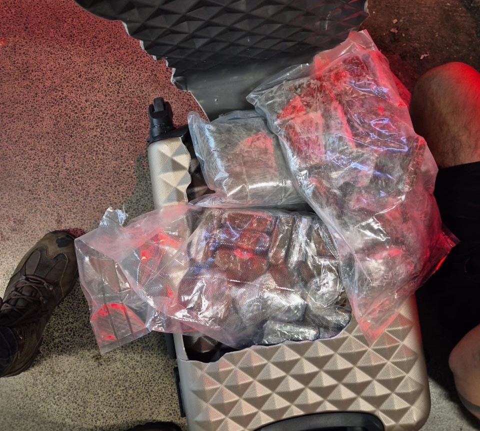 No fundo falso das malas, foram encontrados diversos tabletes de substâncias análogas a haxixe, e outros tabletes de substâncias análogas ao ice. No total 8 quilos de drogas foram apreendidos, montante avaliado em torno de R$ 680 mil.