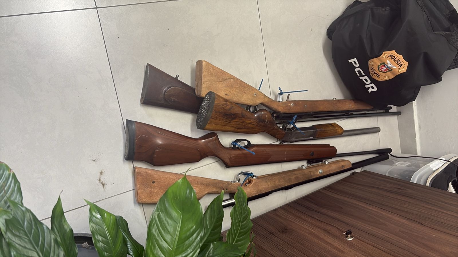 Além dos quatro mandados de prisão, os policiais civis cumpriram ordens de busca nas cidades de Bocaíuva do Sul, na Região Metropolitana de Curitiba, e Criciúma, Araranguá e Florianópolis, em Santa Catarina, com o apoio da Polícia Civil local. Nos endereços, os agentes localizaram 16 porções de haxixe, espingardas, três pistolas 9mm, uma pistola calibre 40 e mais de 200 munições.