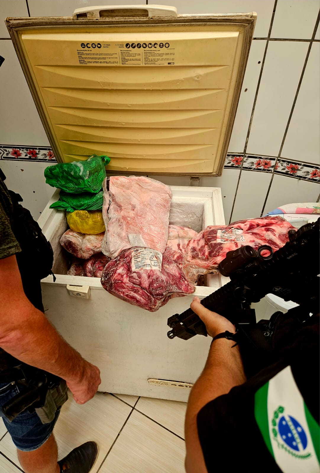 No interior da residência, os policiais localizaram dois freezers contendo cerca de 147 quilos de cortes de carne bovina tipo exportação. Conforme a delegada da PCPR El Santos de Freitas Cavalcanti, o material é proveniente de um saque de carga registrado após o incêndio de um caminhão na BR-376, ocorrido no dia 26 de janeiro. A carga foi apreendida e o homem encaminhado à Delegacia de Polícia de Guaratuba para os procedimentos legais.