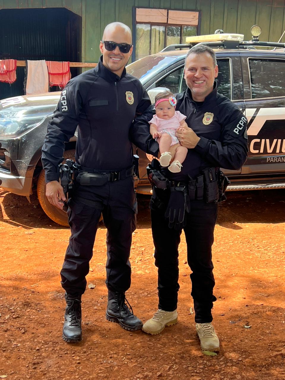O agente de polícia judiciária (APJ) Paulo Fernando Smak Bastolla, da Polícia Civil do Paraná (PCPR), salvou um bebê, de 2 meses, de um engasgo. A ação aconteceu na sexta-feira (23), em São Miguel do Iguaçu, no Oeste do Estado, logo após a localização de 2,5 toneladas de maconha pela equipe policial.